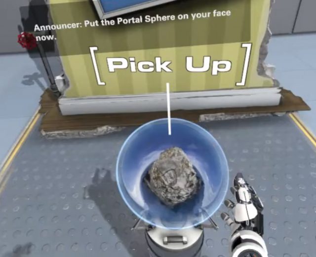 In The Lab, you load a level by pulling an orb onto your head rather than using a menu of listed levels: