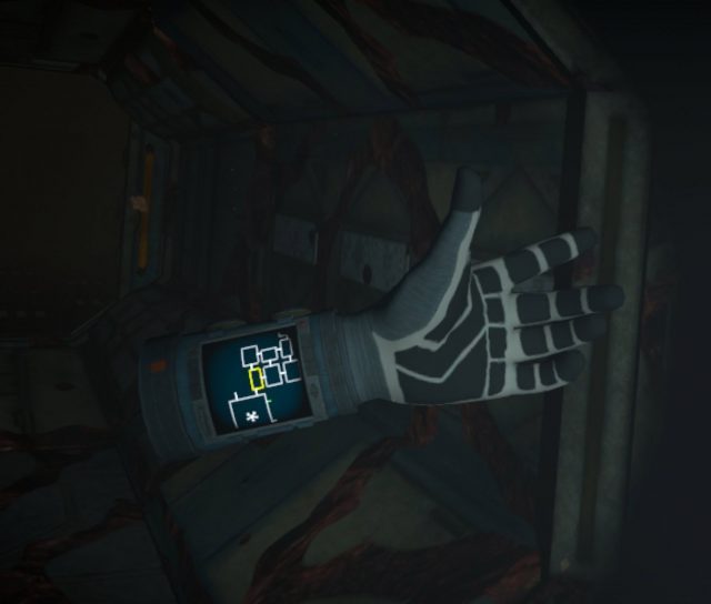 In Cosmodread, an updating map of the spooky ship is wrist mounted and always glanceable: